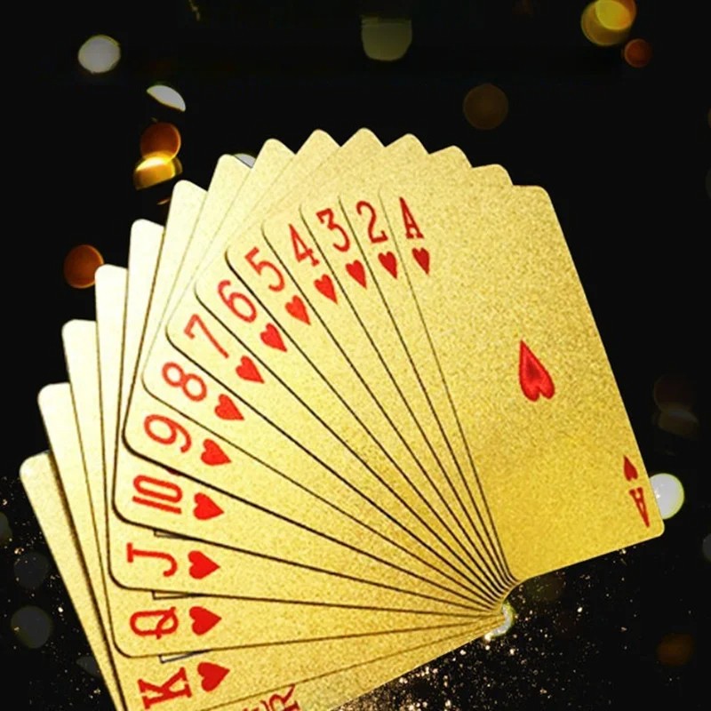 Carte in plastica di lusso in finitura dorata con effetto decorativo, 55 pezzi, dimensioni 57 x 87 mm, lavabili e impermeabili per ogni partita. Descrizione completa