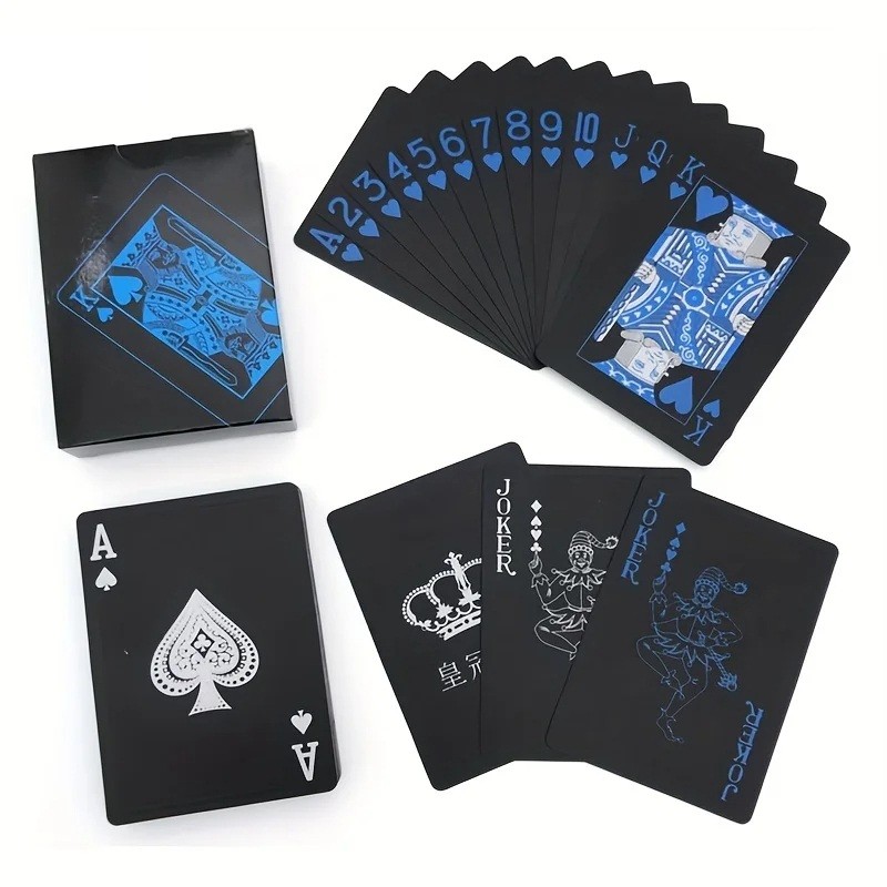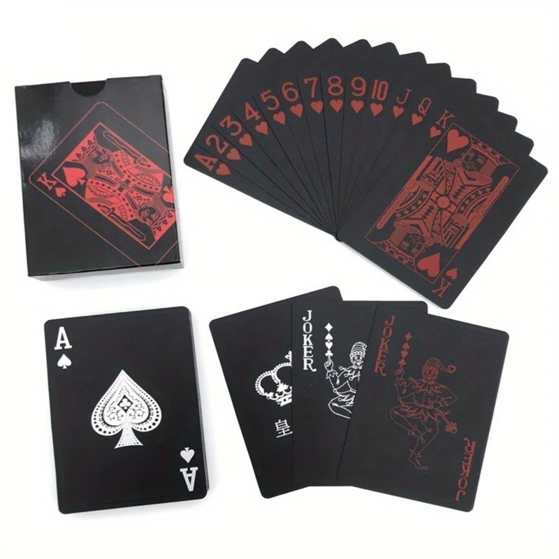 Carte da gioco jolly impermeabili con design nero resistenti all'usura ideali per viaggiare e attività all'aperto dimensioni della scatola 8,8 x 6,3 cm