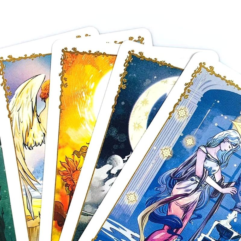 Le carte sono realizzate come mazzo completo di tarocchi, utilizzabile per letture quotidiane e per un lavoro più profondo con i tarocchi. Illustrazioni multicolori garantiscono una buona chiarezza e aiutano nell'orientamento tra le singole carte. I testi sulle carte corrispondono alla versione inglese delle carte dei tarocchi, il che è uno standard comune per molti mazzi.