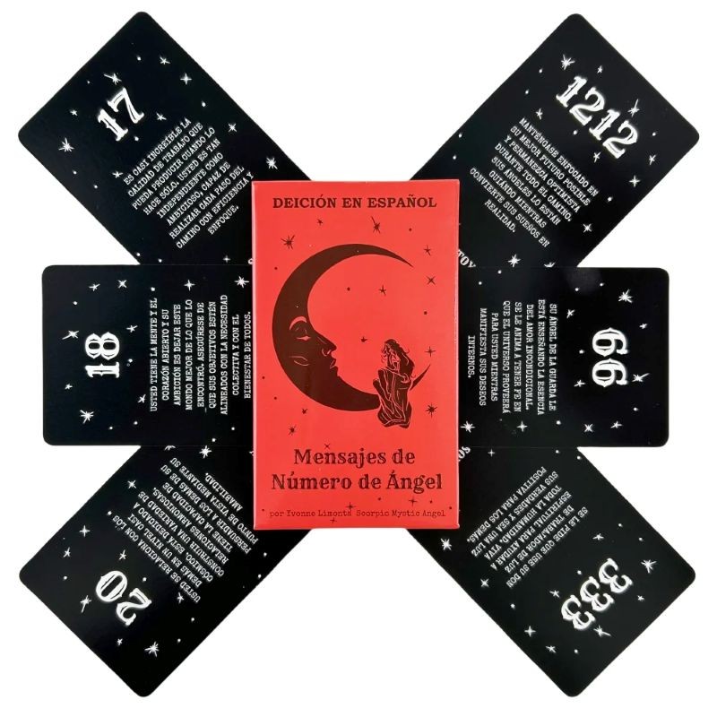 Il design delle carte si basa su uno sfondo scuro con elementi a contrasto, che rendono le informazioni ben leggibili. Sulle carte sono visualizzati numeri e testi accompagnatori in spagnolo, che si riferiscono ai significati delle singole carte. La grafica è semplice e chiara.