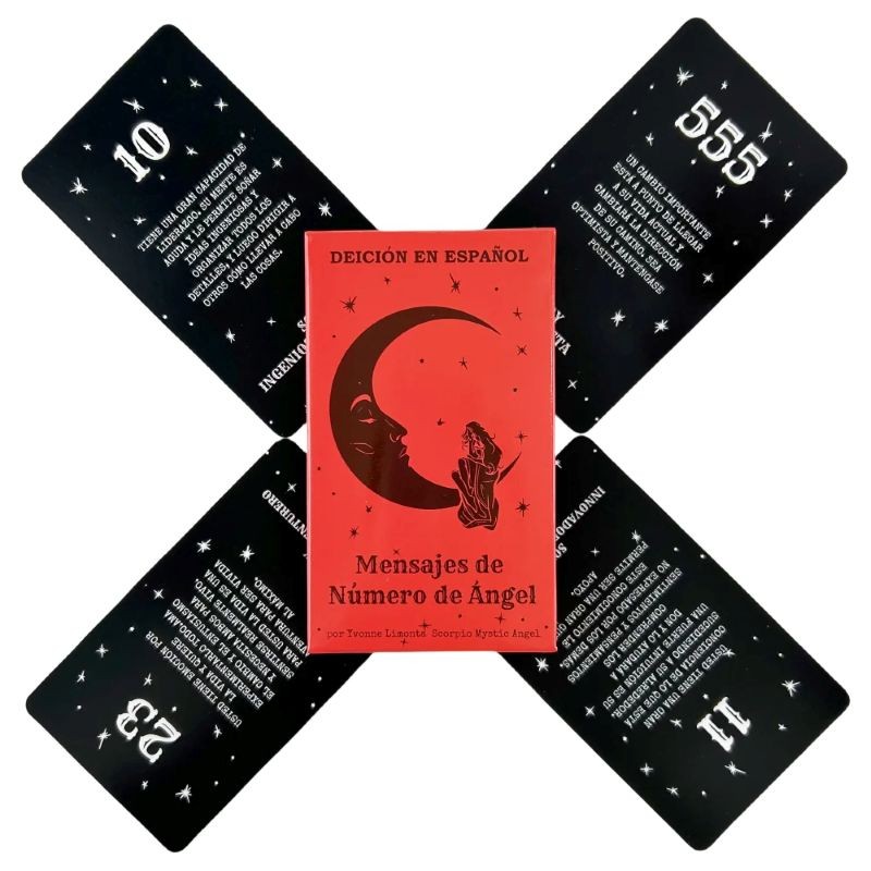 Carte dei Tarocchi versione spagnola 53 carte 10,5 x 6,2 cm carte nere con numeri e testi per la lettura dei tarocchi e il lavoro con la simbolica