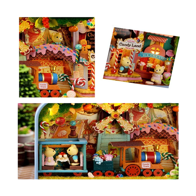Costruzione in legno DIY della casa a scatola con mobili. Regalo creativo e decorazione. Colla e batterie non incluse. Descrizione completa