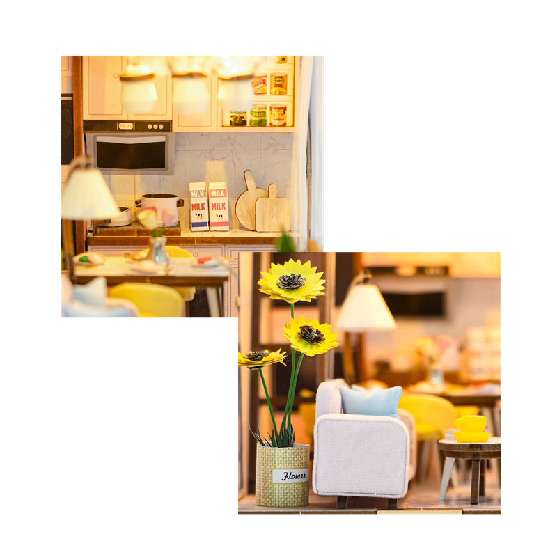 • Contenuto della confezione: 1x kit della casa da assemblare, mobili in miniatura, luce LED (senza colla, attrezzi e batterie)