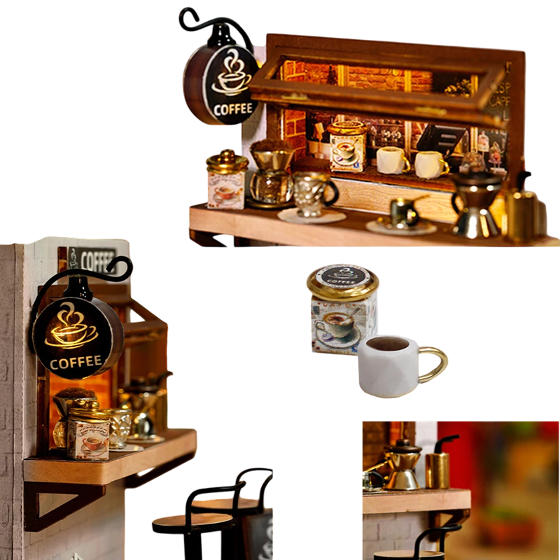 La casetta miniaturizzata è il progetto ideale per momenti di relax e per creare insieme ai bambini. Tutti i pezzi sono tagliati con precisione e si incastrano facilmente. Grazie al suo design compatto, non occupa molto spazio, ma allo stesso tempo delizia con i suoi ricchi dettagli. La casetta può servire come decorazione per interni, vetrina per bambole o parte di una collezione da collezionare. Fatto a mano e assemblato personalmente conferisce a ogni modello un carattere unico.