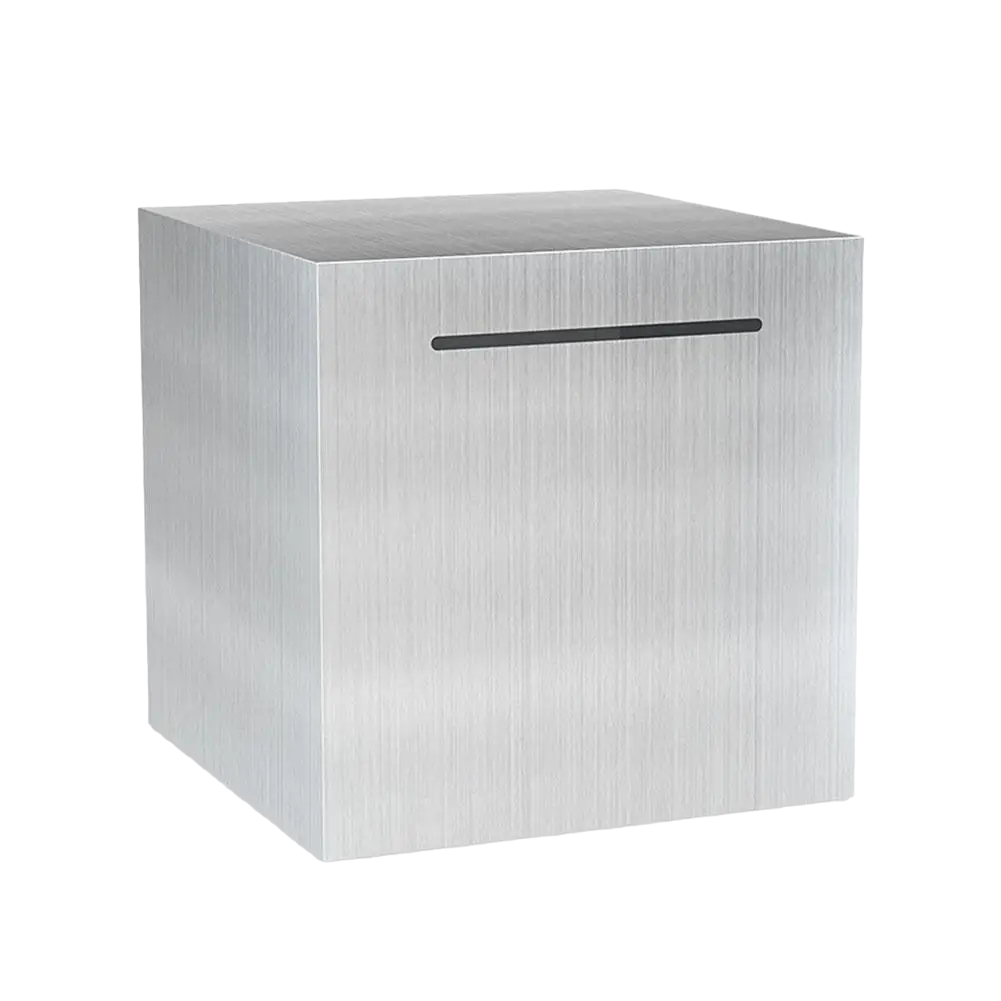 Elegante e resistente cassetta di risparmio in acciaio inossidabile, dimensioni 15 x 15 cm, ideale per bambini e adulti che desiderano conservare in modo sicuro i propri risparmi. Descrizione completa