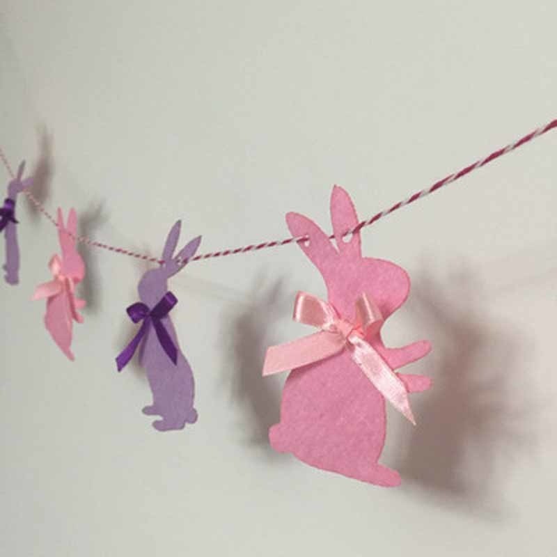 Fai la decorazione pasquale a casa con questi coniglietti. I coniglietti sono attaccati a un cordino e formano una catena.
