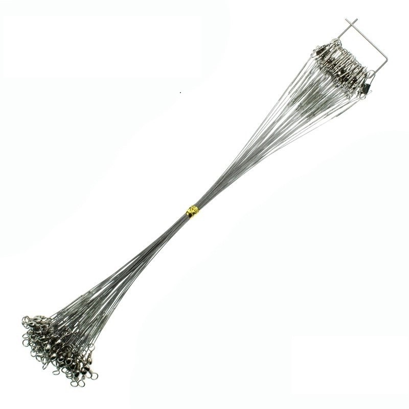 Questi cavi in acciaio sicuramente faciliteranno la cattura dei pesci predatori. I cavi sono resistenti ai denti affilati e agli ostacoli. Puoi usarli per la pesca con esche, sia artificiali che vive. La girella e il moschettone sono collocati in anelli resistenti.