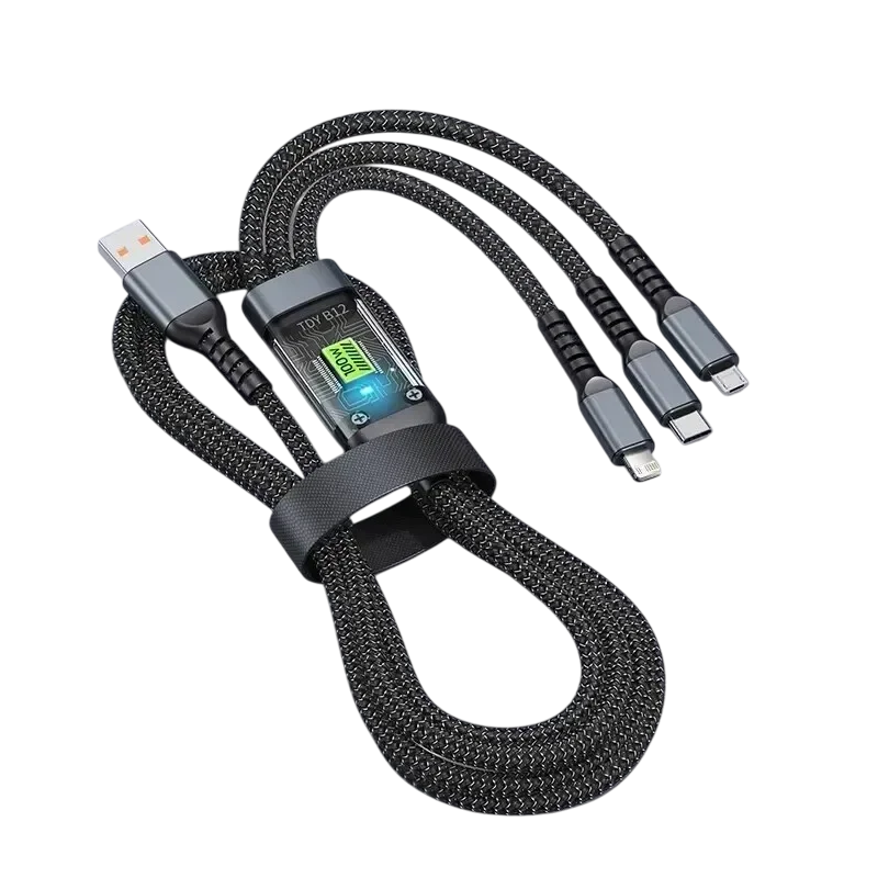 Grazie a questo cavo non dovrete più portare tre diversi caricabatterie – tutto si gestisce con un'unica connessione. Alta potenza fino a 100 W combinata con intrecciatura resistente ed effetto luminoso garantisce che il cavo non sia solo pratico, ma anche stiloso. È ideale per utenti con diversi dispositivi – da iPhone a telefoni Android o altri apparecchi con Micro USB. Lunghezza flessibile di 1,2 m è perfetta per la scrivania, in auto o accanto al letto. Se cercate un cavo resistente ed elegante per un uso quotidiano, questa è un'ottima scelta.