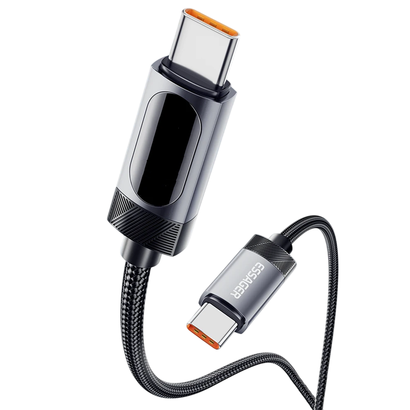 Cavo USB C duale resistente con supporto per ricarica rapida PD100W, display LED e trasferimento dati ad alta velocità fino a 480 Mbps con lunghezza di 1 metro. Descrizione completa