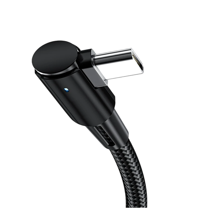 Cavo USB C da 3 m resistente con angolo di 90°, potenza di 100W, luce LED, supporto PD e QC4.0, ideale per ricarica rapida e trasferimento dati a 480 Mb/s. Descrizione completa