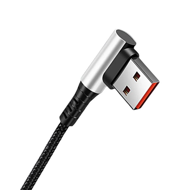 Cavo USB corto con angolo doppio a 90°, ideale per ricariche rapide e trasferimento dati. Potenza 6 A, lunghezza 25 cm. Adatto per smartphone, powerbank e giochi. Descrizione completa