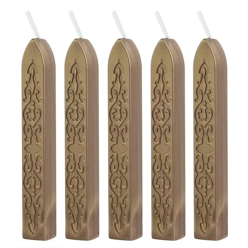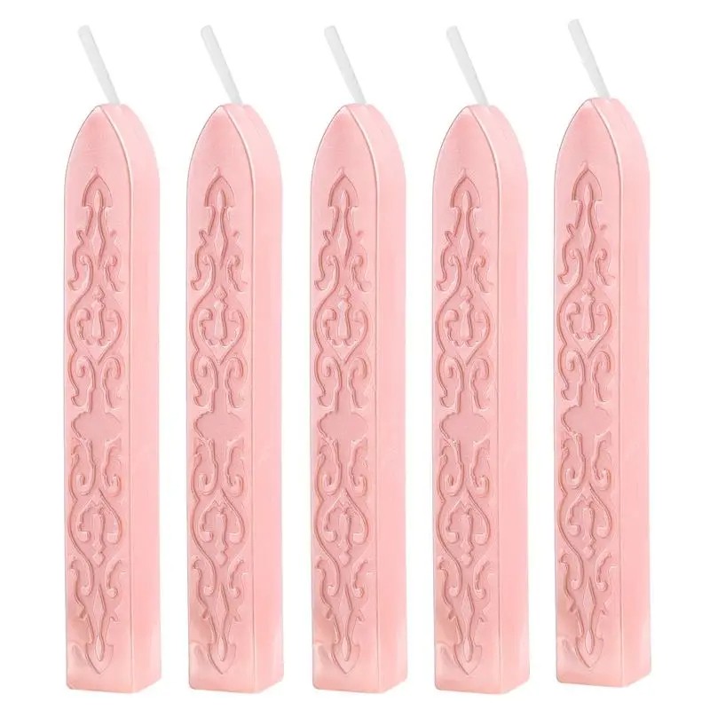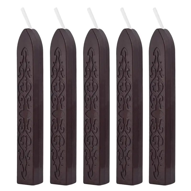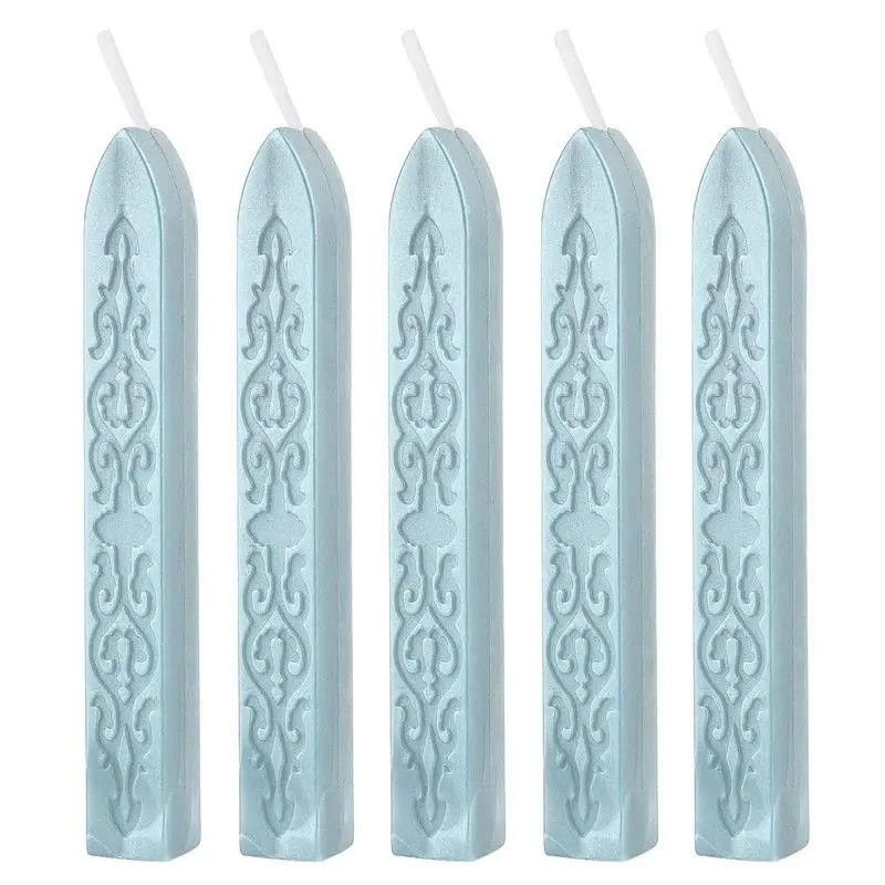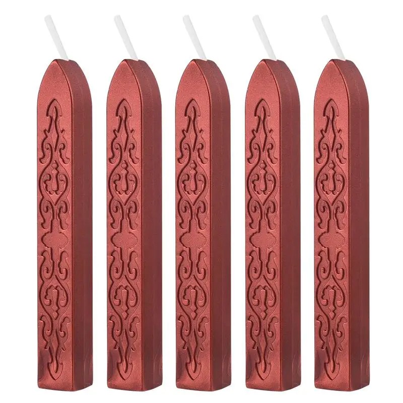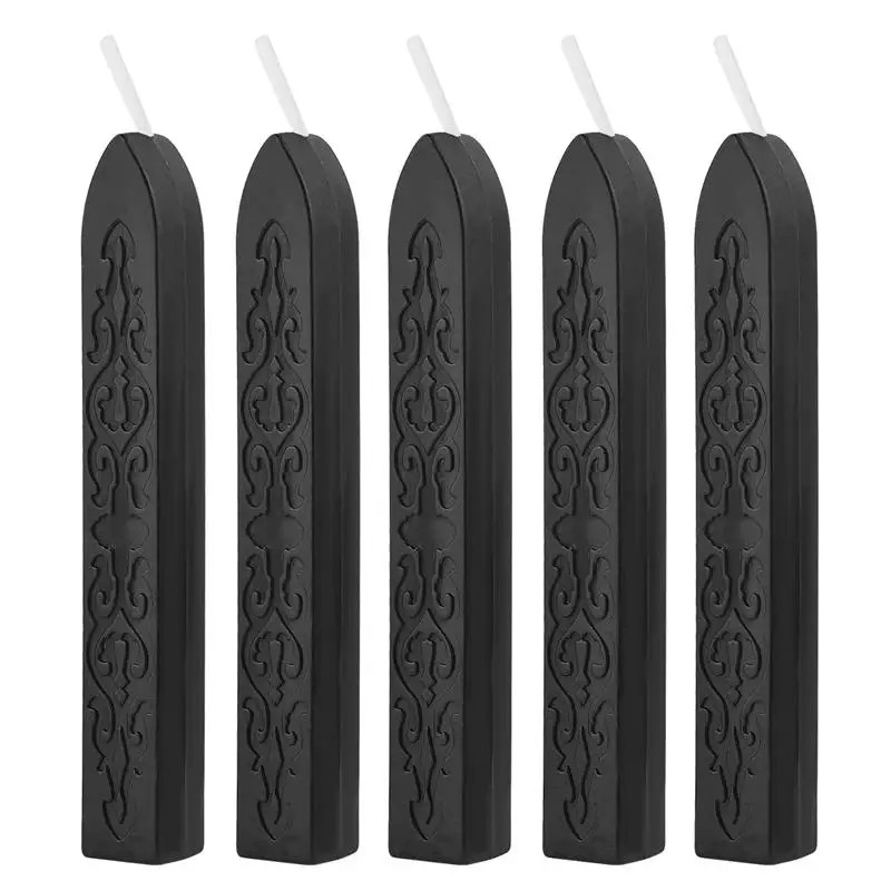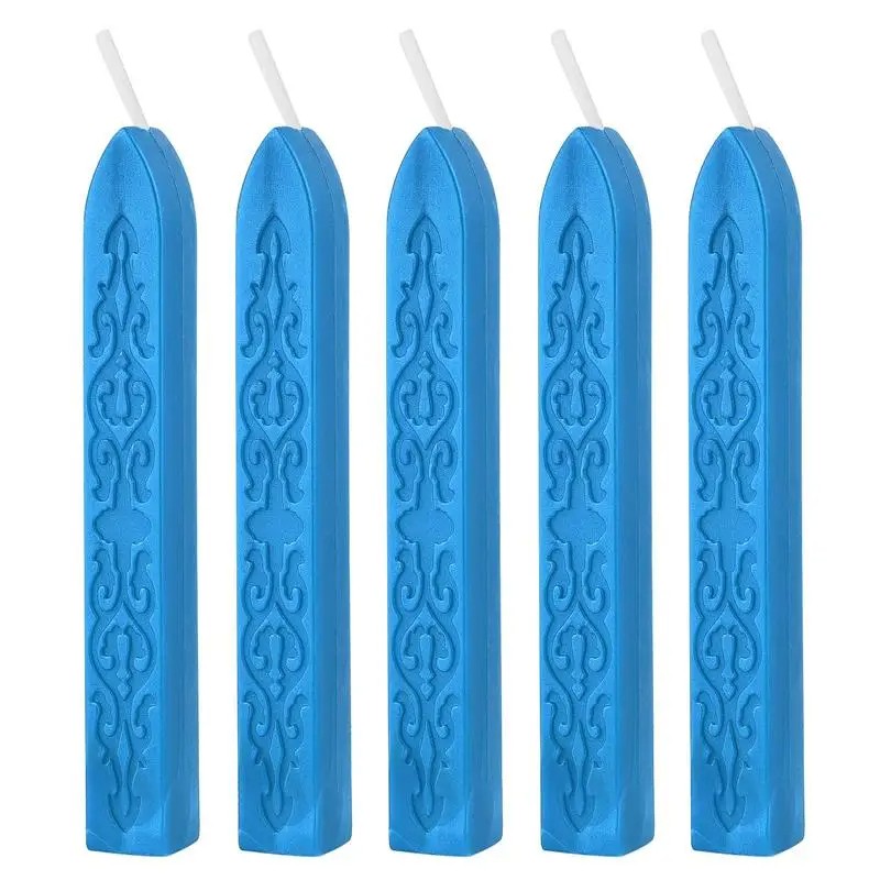 Ceralacca di alta qualità con stoppino, confezione contiene 5 pz, disponibile in vari colori per una sigillatura elegante di lettere e inviti. Descrizione completa