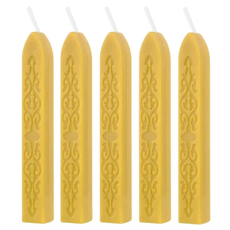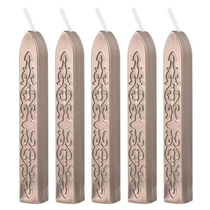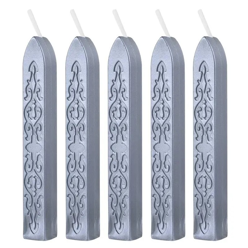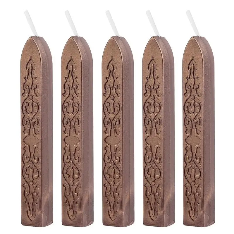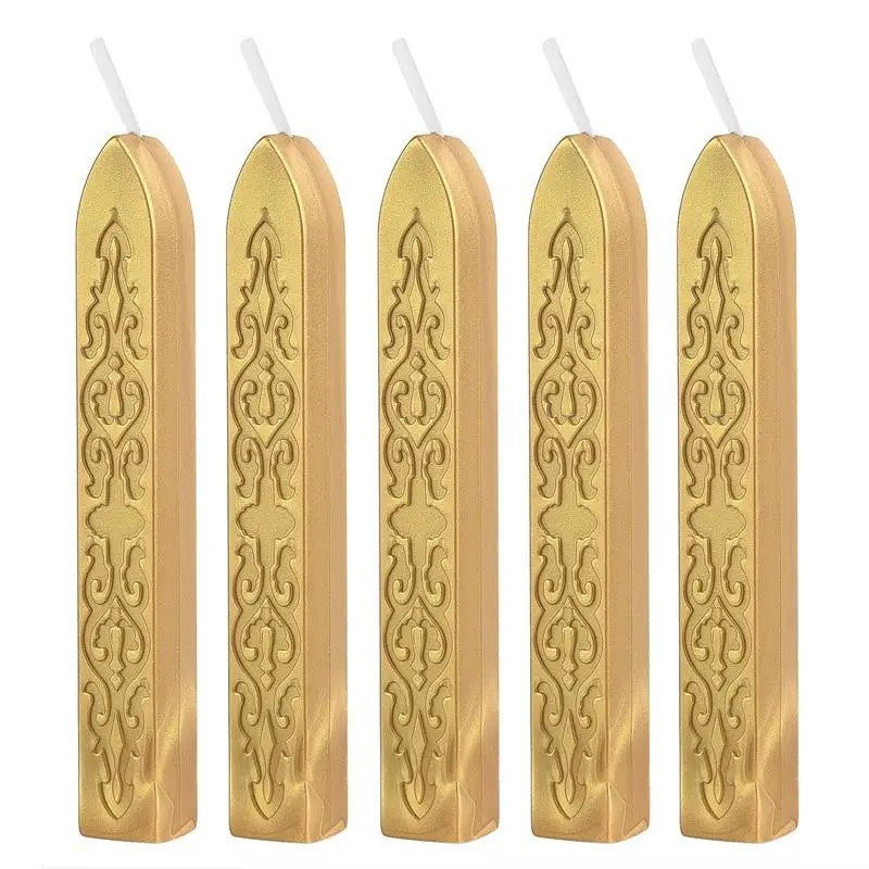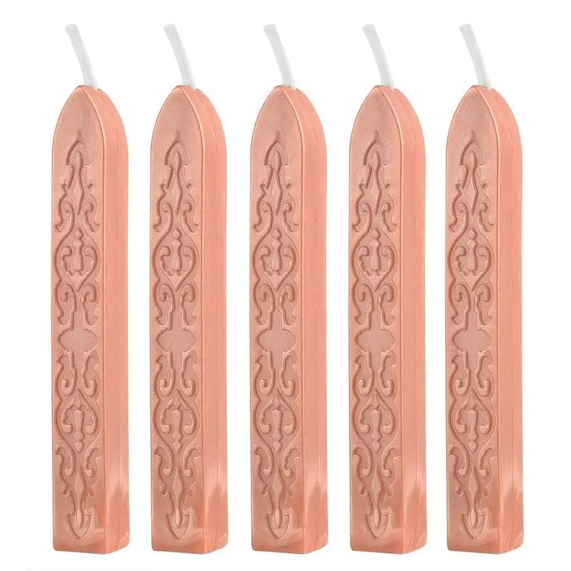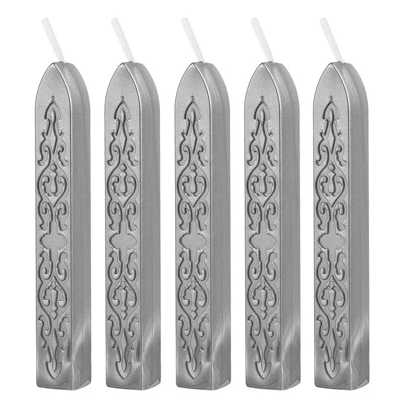Ceralacca di alta qualità con stoppino, confezione contiene 5 pz, disponibile in vari colori per una sigillatura elegante di lettere e inviti. Descrizione completa