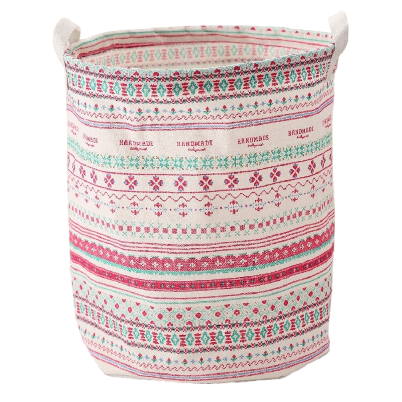 Fodera impermeabile. Materiale: cotone e lino. Dimensioni: 43 x 33 cm. Pieghevole. Cesto con manici. Descrizione completa