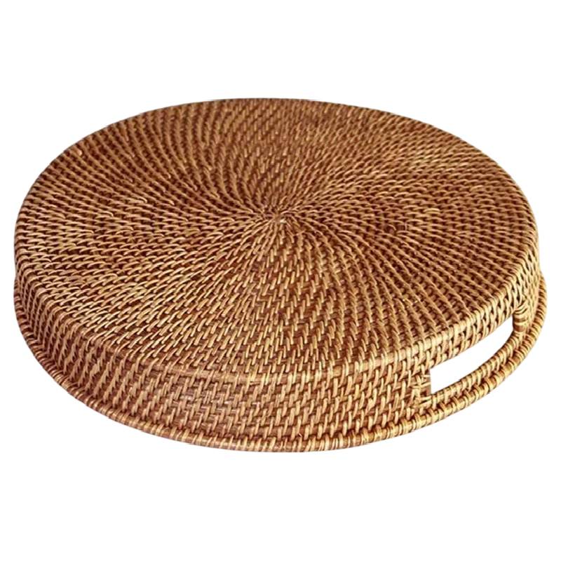 Cesto tondo da stoccaggio intrecciato a mano 35 x 6 cm Scatola decorativa bassa per piccoli oggetti chiavi cosmetici organizzazione domestica