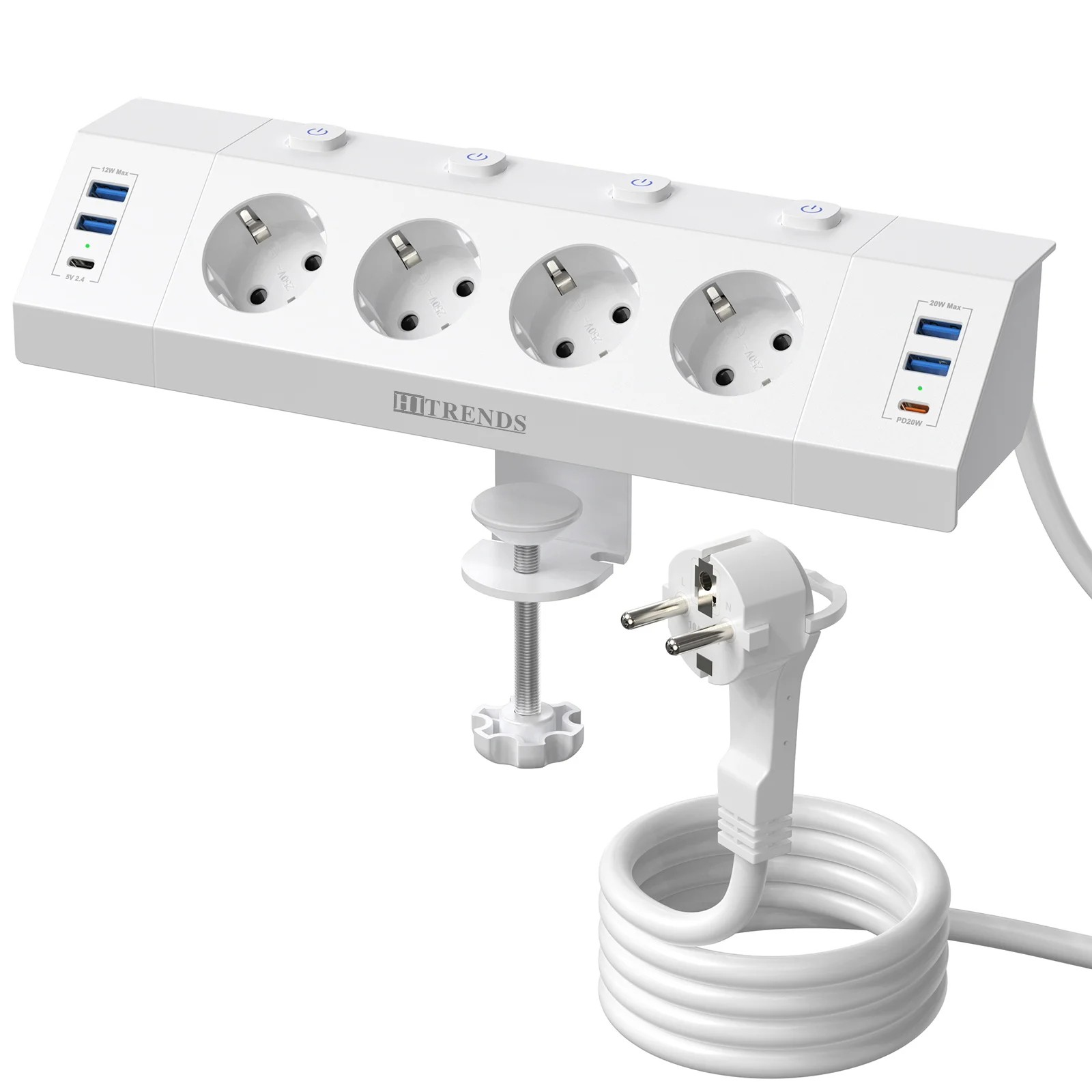 Ciabatta da tavolo con supporto di fissaggio 29,7×7,5×6 cm PC+ABS 4×USB-A 2×USB-C cavo 3 m 250 V 3250 W per tavolo