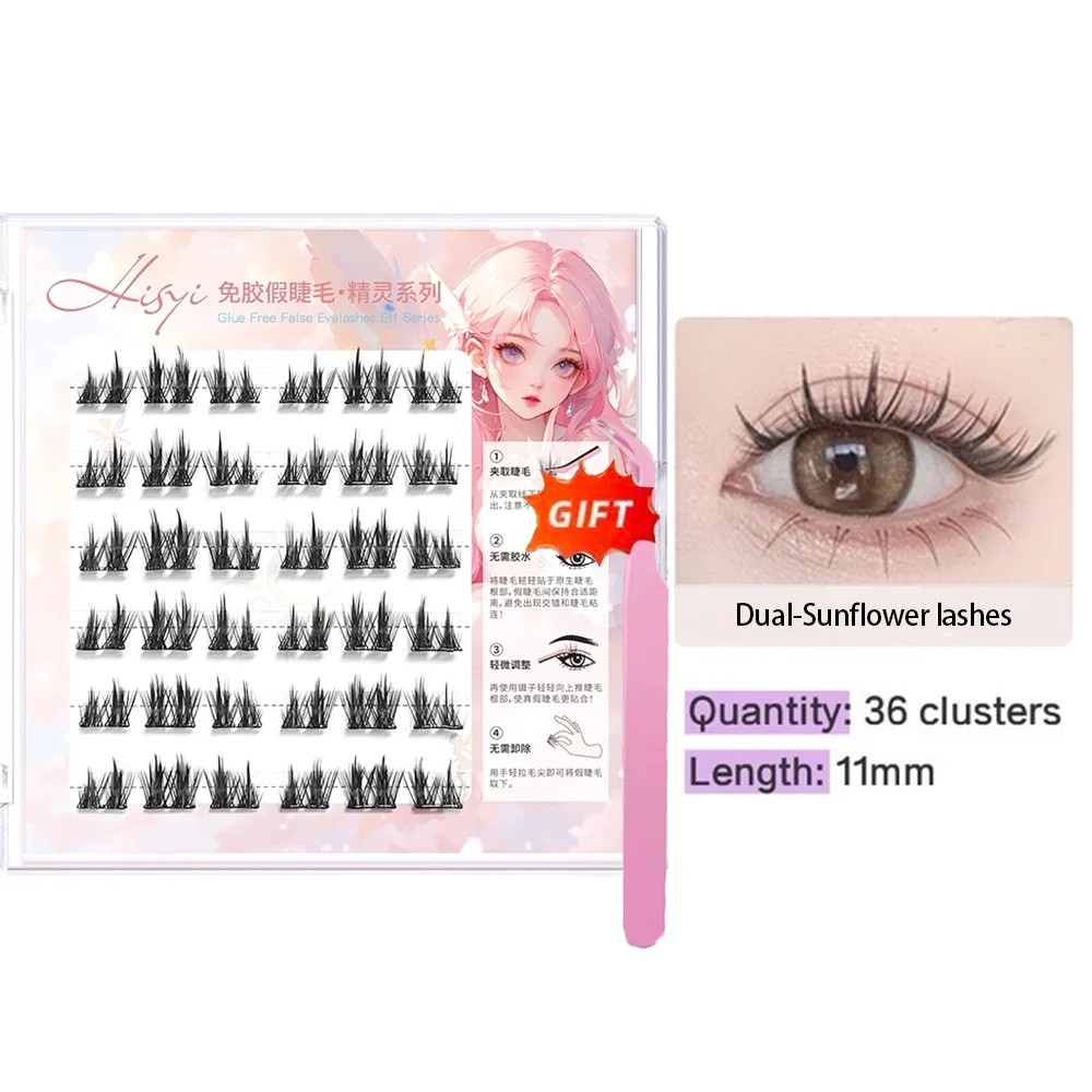 Pagina iniziale Pagina iniziale Salute e bellezza Occhi e sopracciglia Ciglia finte Ciglia a ciuffo adesive 3D effetto gatto 11 mm 36 pezzi ciuffi doppi densi in 6 file Ciglia finte waterproof a lunga durata con pinzetta precisa