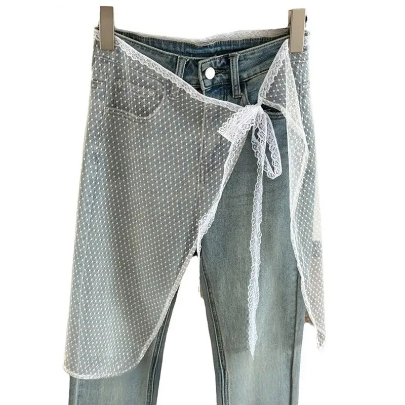 Pagina iniziale Pagina iniziale Abbigliamento e accessori Abbigliamento donna Gonne da donna Minigonne da donna Cintura avvolgente in pizzo di tulle 74 x 55 cm Gonna trasparente con motivo a pois Sovrapposizione su pantaloni Accessorio elegante a strati