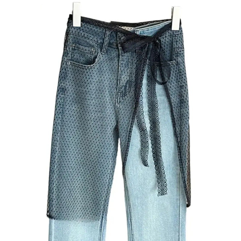 Cintura leggera in pizzo con delicato motivo a pois, ideale come accessorio a strati sopra i pantaloni. Elegante e comoda per uno stile quotidiano. Descrizione completa