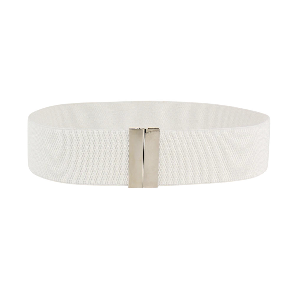 Cintura elastica larga da donna con fibbia argento mette in risalto la silhouette e aggiunge eleganza a ogni outfit – ideale per abiti, camicie e tuniche. Descrizione completa