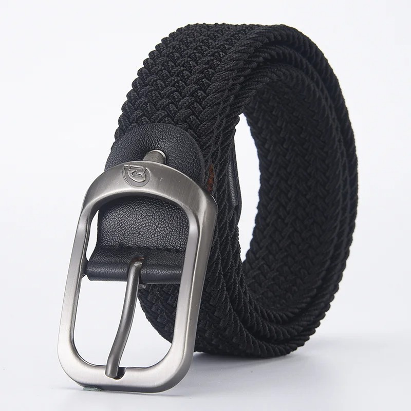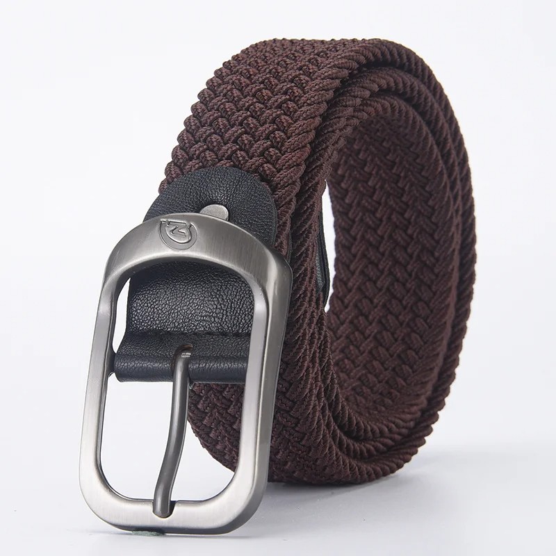 Cintura elastica intrecciata con fibbia in metallo per un comfort ottimale. Accessorio unisex alla moda per abbigliamento casual e quotidiano. Descrizione completa
