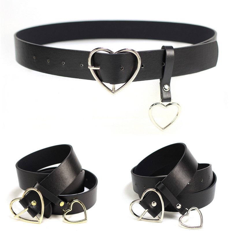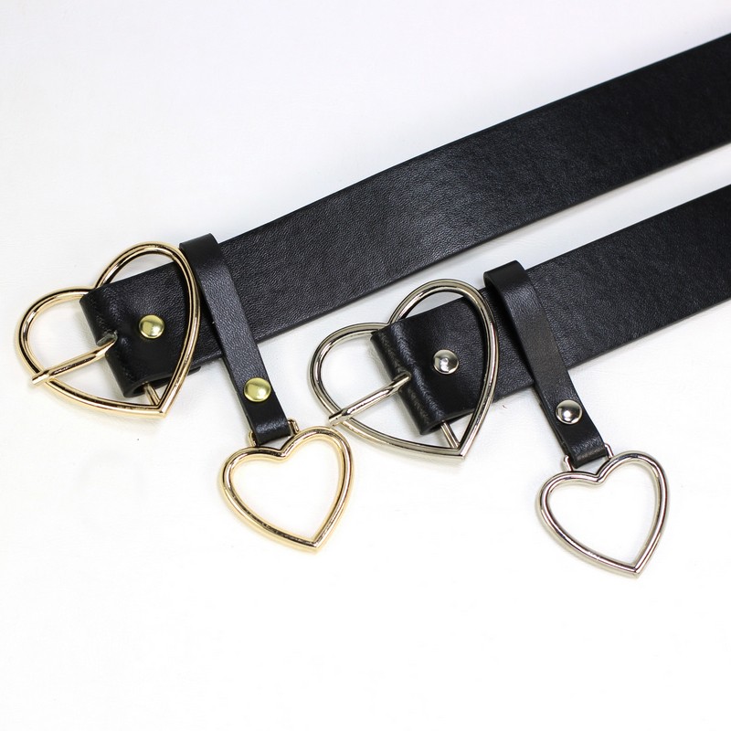 Cintura elegante con fibbia e pendente a forma di cuore, adatta sia per pantaloni che per gonne.