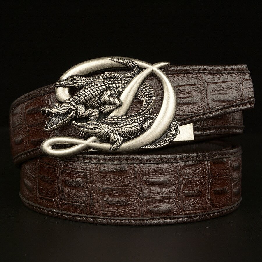 Cintura in pelle da uomo con coccodrilli