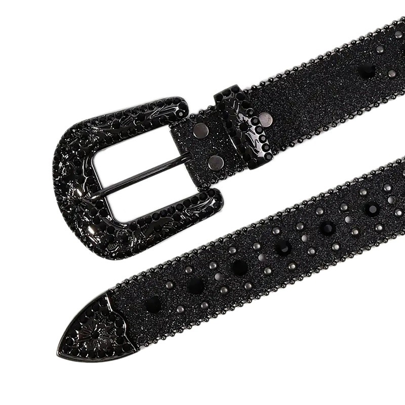 Pagina iniziale Pagina iniziale Abbigliamento e accessori Abbigliamento donna Accessori da donna Cinture da donna Cintura nera da donna in PU con strass 3,8 cm Cintura larga alla moda con glitter Accessorio di moda per pantaloni, abiti e gonne