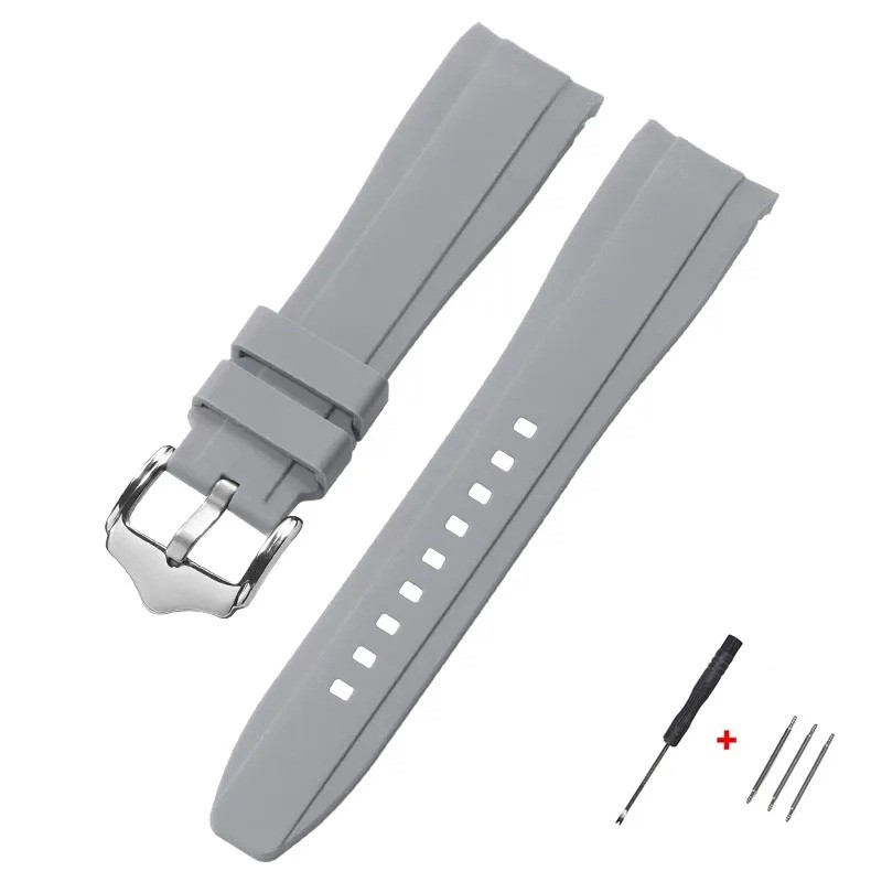 Questo cinturino in gomma di alta qualità con larghezza 20 mm è l'accessorio ideale per gli utenti che cercano una soluzione elegante e allo stesso tempo estremamente resistente per i propri orologi. Grazie alla sua estremità arrotondata, si adatta perfettamente alla forma della cassa e offre un collegamento elegante, che è notevolmente più comodo e esteticamente più pulito rispetto alle varianti dritte comuni. Il cinturino è realizzato in morbido caucciù siliconico, che è impermeabile, molto flessibile e straordinariamente piacevole da indossare ogni giorno. È particolarmente adatto per i modelli Swatch, Omega Moonswatch, Omega Speedmaster e Seiko, che verranno arricchiti da un aspetto attraente e da funzionalità professionali.