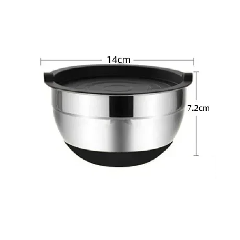 Ciotola in acciaio inox per mescolare 14 x 7,2 cm con coperchio Guarnizione in plastica Fondo antiscivolo in silicone Utensili da cucina Ciotola per cucinare