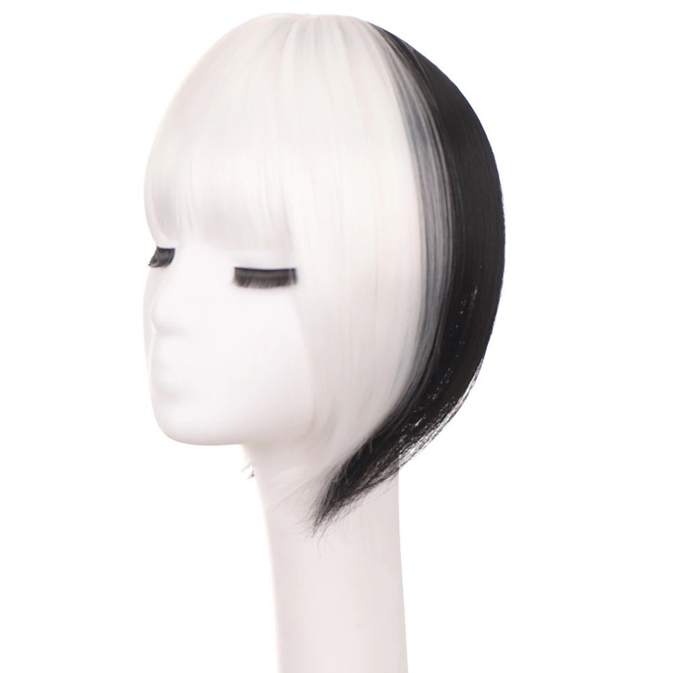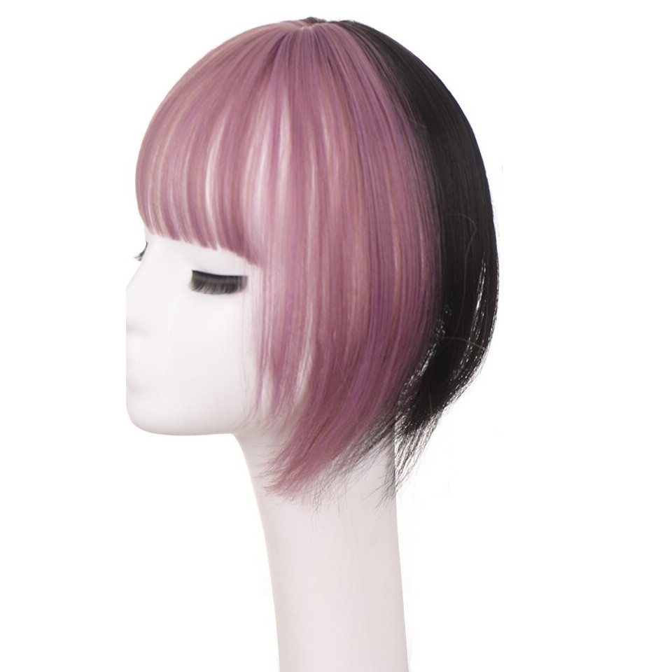 Clip in frangia è realizzata in fibre sintetiche di alta qualità. Frangia più voluminosa e folta in pochi minuti. Due colori. Adatta per feste. Può essere asciugata, arricciata o stirata. Alta resistenza.