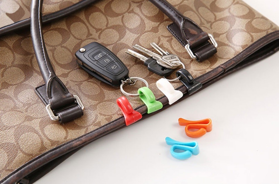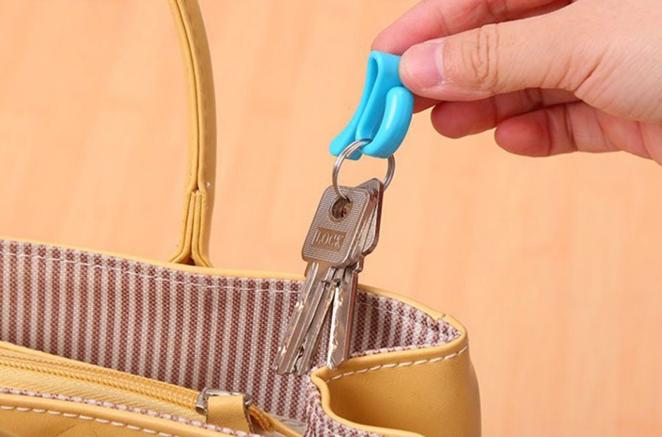 Il clip si inserisce facilmente nella tasca interna della borsa e su gancio puoi appendere qualsiasi chiave.