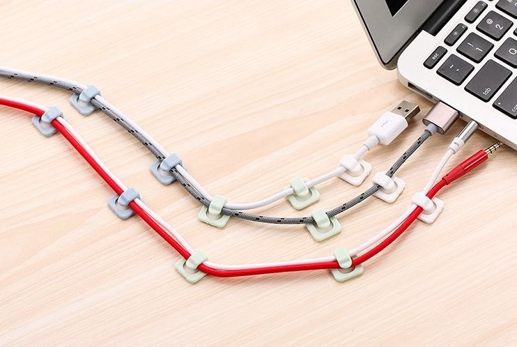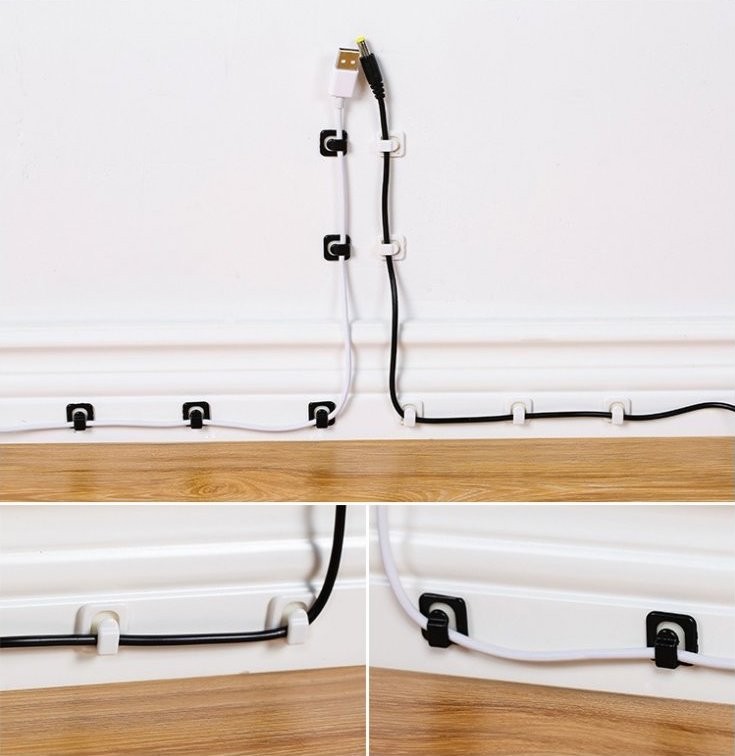 Grazie agli adesivi biadesivi, puoi facilmente fissarli su una superficie pulita e basta inserire il cavo nel clip.
