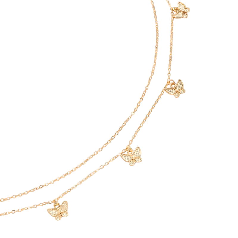 Collana addominale a due strati in oro che mette in risalto la vita, completa gli outfit estivi e da festival e conferisce alla silhouette un aspetto sensuale. Descrizione completa