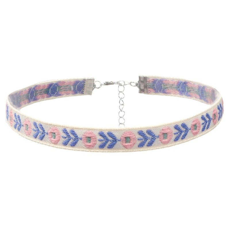 Collana choker da donna con motivo floreale e chiusura in cotone rosa accessorio in tessuto per uso quotidiano