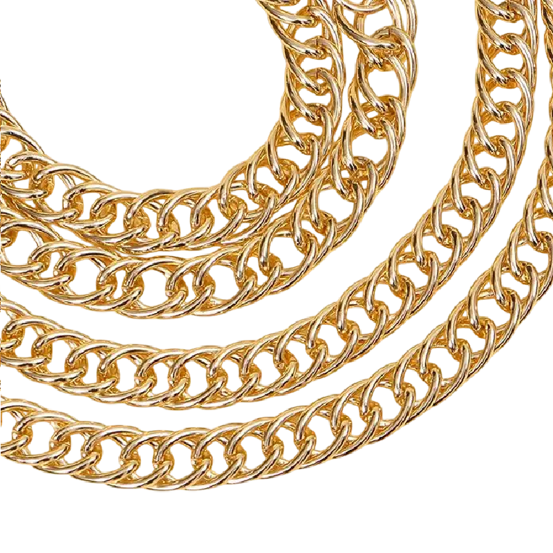 Pagina iniziale Pagina iniziale Abbigliamento e accessori Abbigliamento donna Accessori da donna Portachiavi e ciondoli per chiavi Collana dorata per borsa 110 x 1 cm Cinghia in metallo di alluminio per borsa Cinghia di ricambio con moschettoni Accessorio elegante
