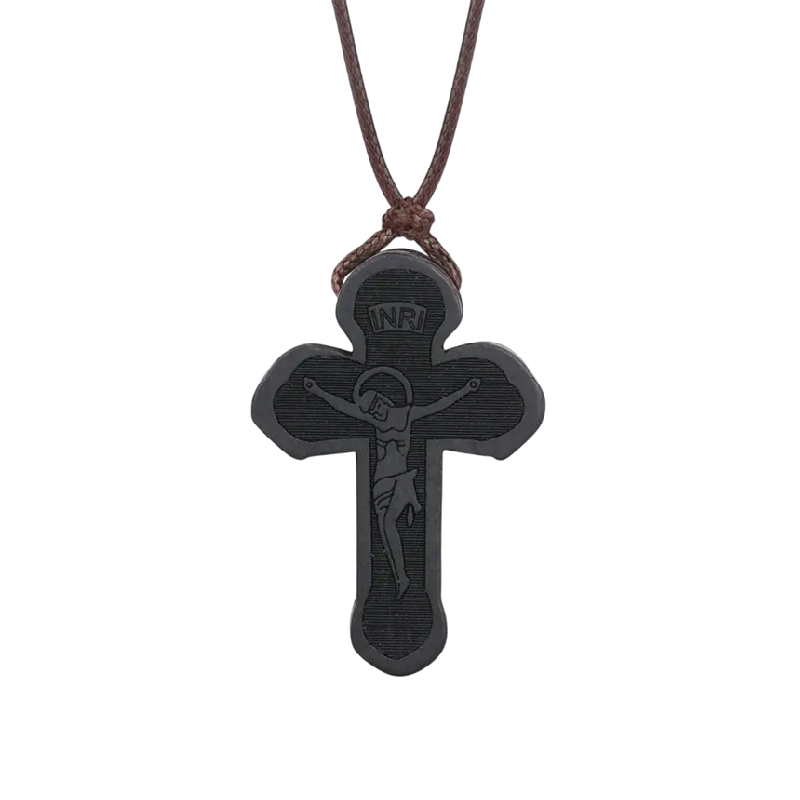 Collana in legno con croce ortodossa e lunghezza regolabile. Adatta per l'uso quotidiano e come accessorio simbolico. Descrizione completa