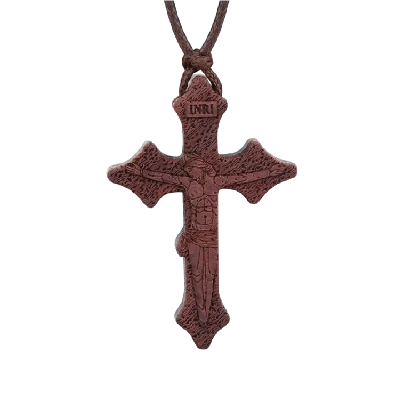 Collana in legno con croce ortodossa e rilievo dettagliato. La lunghezza regolabile garantisce un comfort quotidiano. Descrizione completa