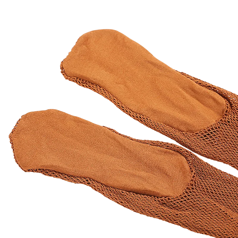 Collant resistenti in rete rigida con effetto antiscivolo, ideali per danza, esibizioni e uso quotidiano. Perfetta aderenza e comfort. Descrizione completa