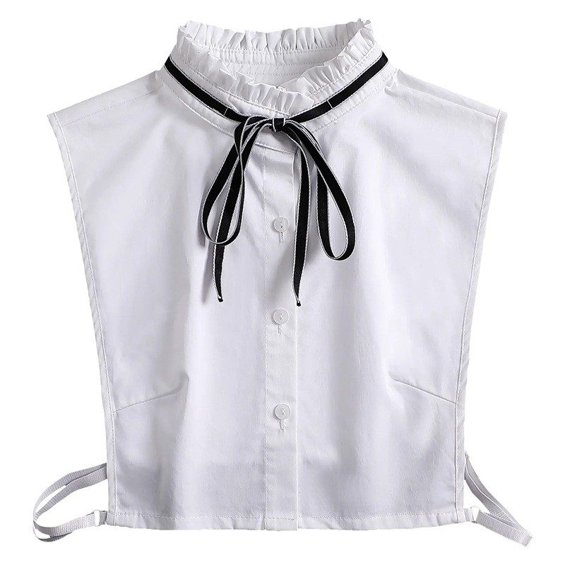 Il materiale leggero e traspirante garantisce il massimo comfort per tutto il giorno. Il design rimovibile consente di abbinarlo facilmente a diversi outfit, senza dover indossare un'intera camicia. Il nastro nero conferisce al colletto un fascino unico, mentre il taglio alto appare elegante e raffinato.