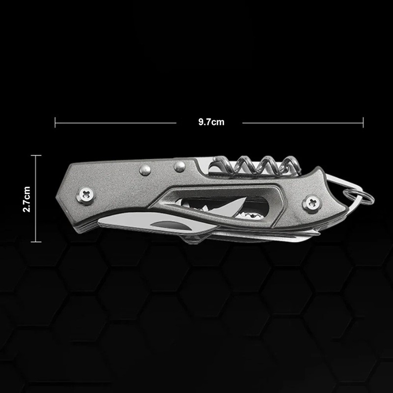Coltello multifunzionale compatto in acciaio inossidabile e lega di alluminio, ideale per campeggio, escursioni, riparazioni, viaggi e uso quotidiano. Descrizione completa
