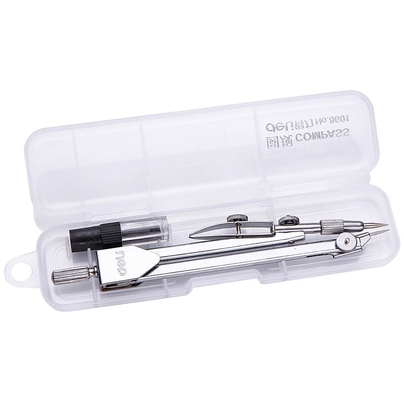 Compasso metallico in acciaio inossidabile per disegno con mine di ricambio in astuccio Compasso per geometria con astuccio trasparente 12 x 3 cm