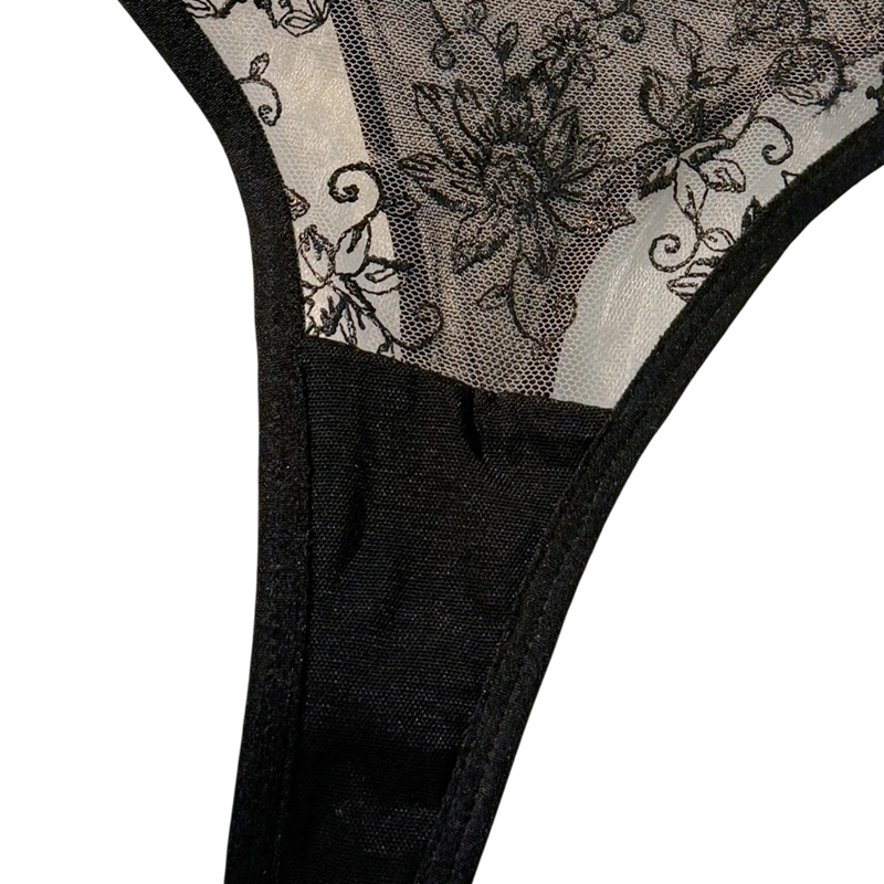 Il completo in pizzo con ricamo e leggera rete offre comfort e stile per l'uso quotidiano come biancheria intima. Descrizione completa