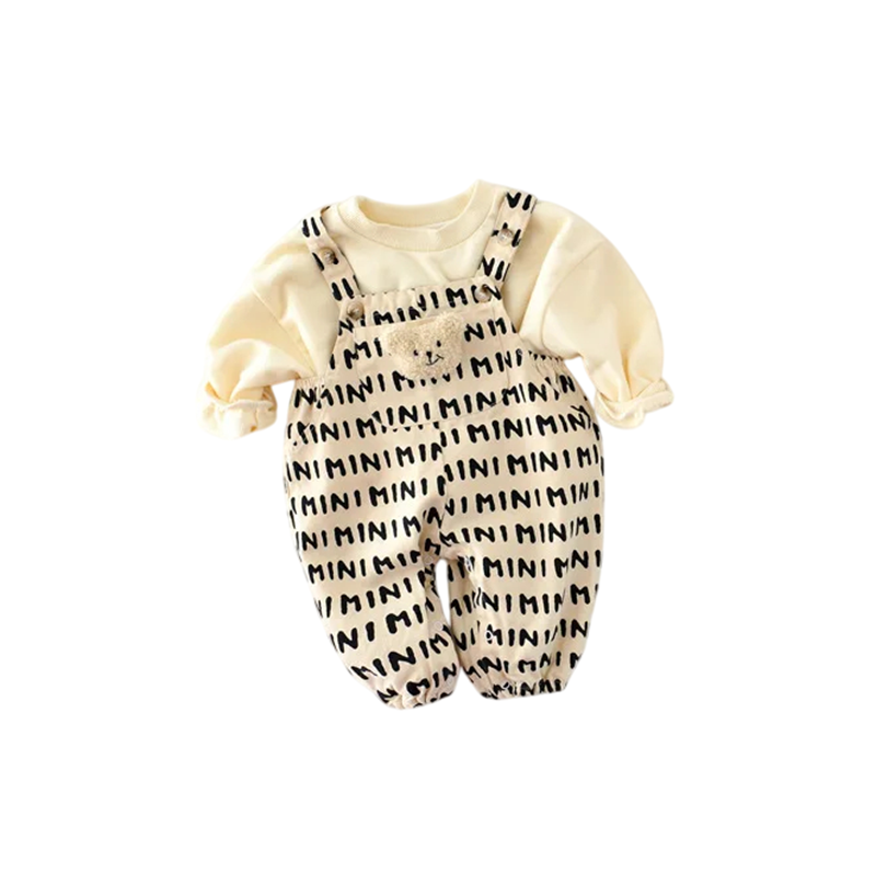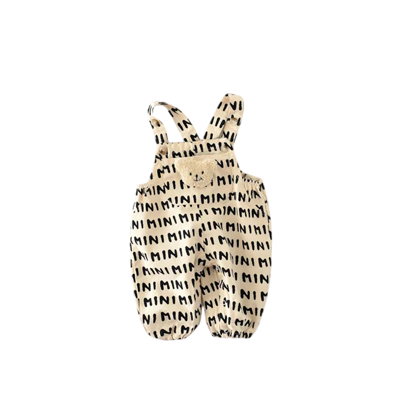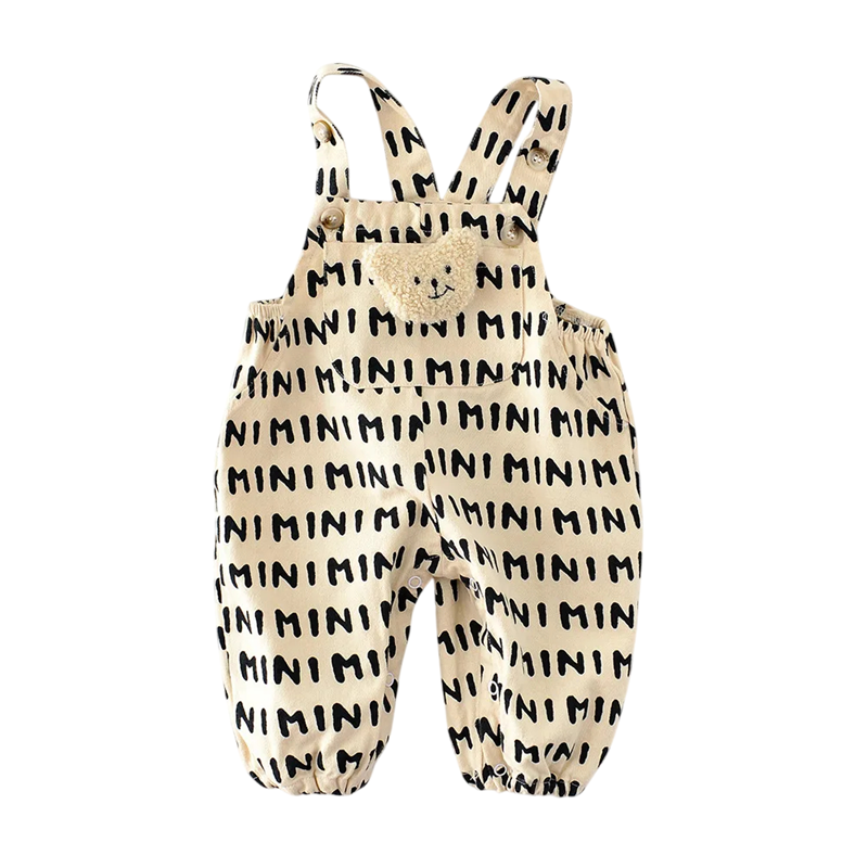 Completo in cotone per bambini senza maniche con orsetto e scritta MINI Completo beige per neonati con tasca e bottoni sulle spalle per ragazze e ragazzi