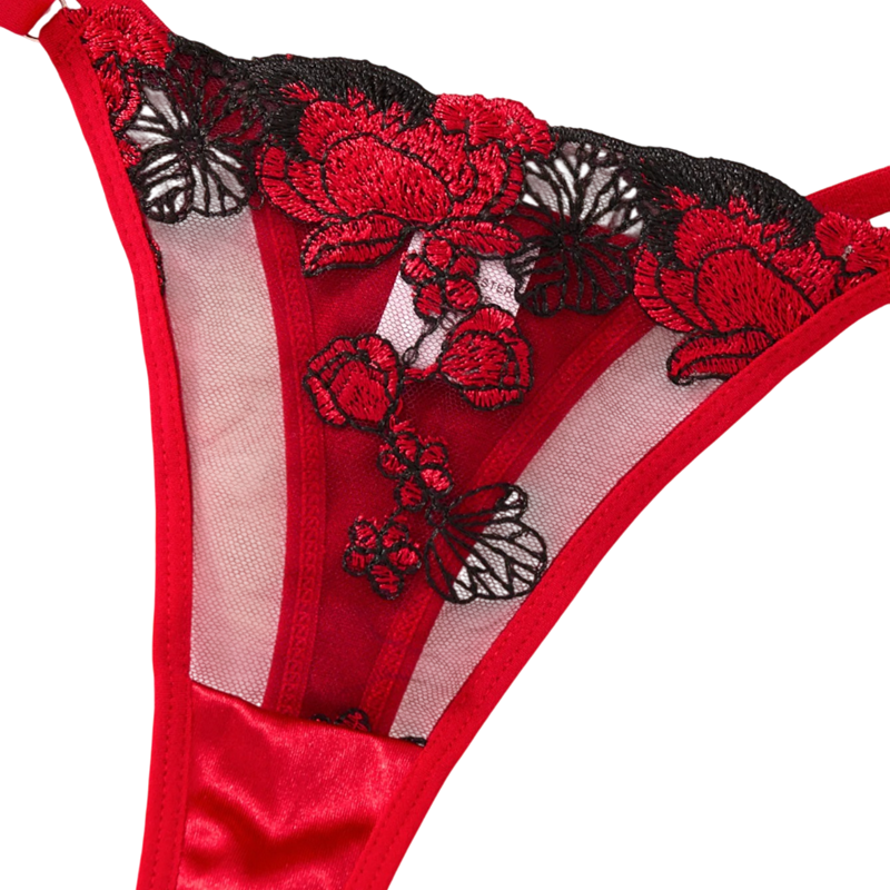 Pagina iniziale Pagina iniziale Abbigliamento e accessori Abbigliamento donna Biancheria intima da donna Completi intimi da donna Completo in pizzo da donna con reggiseno e slip con ricamo floreale in elastan e poliestere rosso per uso quotidiano intimo