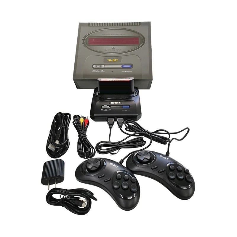 Contenuto della confezione: 1x console di gioco, 1x alimentatore, 1x cavo Micro USB / USB 1,8 m, 1x cavo AV 91 cm, 2x controller, schede di gioco