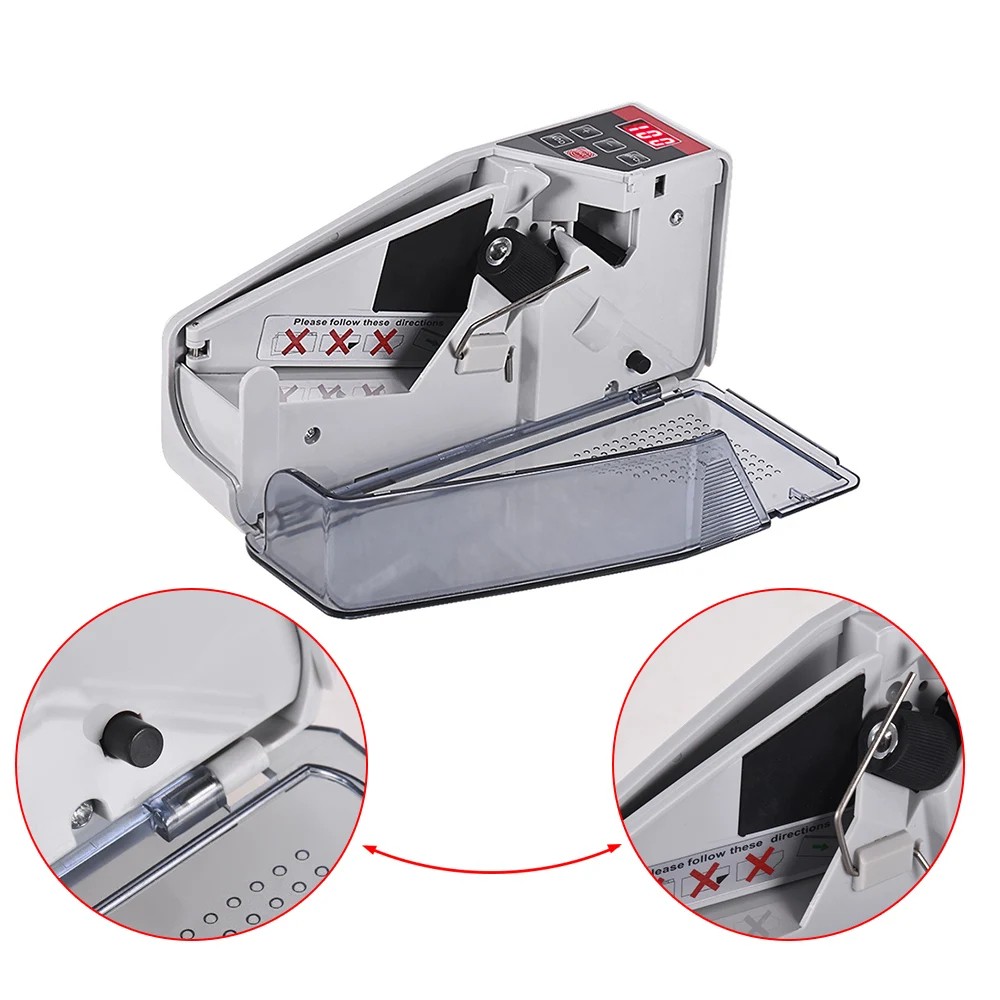 Questo contatore di banconote portatile è la scelta ideale per piccole imprese, venditori ambulanti, negozi e altre attività dove è necessaria una conta rapida e precisa del denaro contante. Il dispositivo è in grado di elaborare fino a 600 banconote al minuto e può contenere fino a 100–120 pezzi alla volta. Ha un semplice controllo tramite i pulsanti START, ADD e BATCH, che consentono di avviare facilmente un nuovo conteggio, sommare più pacchetti o impostare il dosaggio.