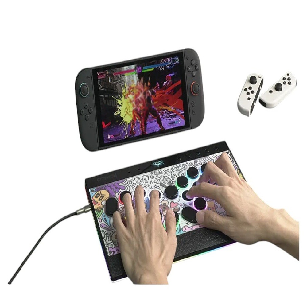 Il controller arcade senza leva Haute42 C16-S rappresenta una soluzione di alta gamma per i giocatori di giochi di combattimento che richiedono velocità estrema, precisione e risposta immediata. Il suo corpo robusto di dimensioni 299,8 × 199,8 × 13,5 mm offre ampio spazio per una maneggevolezza confortevole, mentre il design del pannello magnetico consente una facile manutenzione e una rapida sostituzione dei template. Il controller è dotato di un bordo RGB migliorato e di un'illuminazione ambientale che può essere personalizzata in dettaglio per creare un aspetto e un'atmosfera unici durante il gioco. Grazie alla tensione operativa di 5V e a una connessione USB-C stabile, il dispositivo offre comunicazione rapida e affidabile senza ritardi.