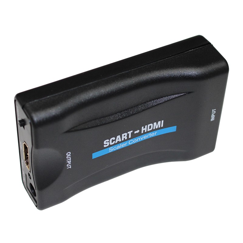 Convertitore adattatore video Scart 1080P a HDMI, audio per TV HD, DVD, per Sky Box STB Plug and Play con cavo DC.