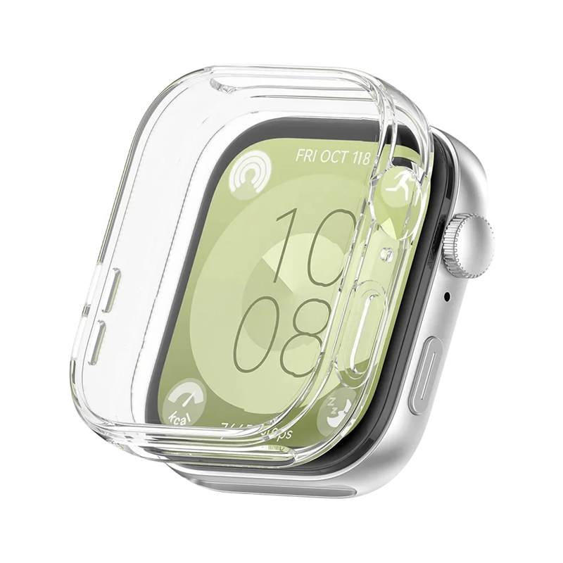 Il coperchio protettivo completo è un accessorio pratico per gli smartwatch Huawei Watch Fit 3. La custodia aiuta a proteggere sia lo schermo che la cornice dell'orologio da graffi, urti e usura quotidiana durante l'uso. Grazie al materiale flessibile in TPU, la custodia si monta facilmente e si adatta perfettamente alla forma dell'orologio. Il design trasparente e sottile mantiene l'aspetto elegante del dispositivo. La custodia non limita la sensibilità del touchscreen né l'accesso alle funzioni dell'orologio.